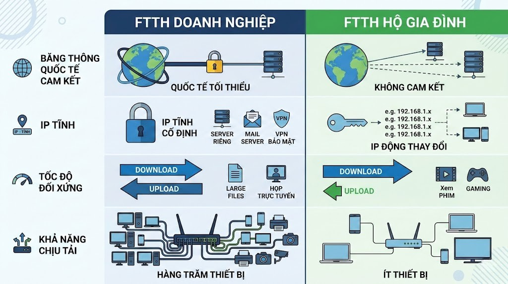 Cùng là công nghệ cáp quang, nhưng gói cước doanh nghiệp lại mang đến những trải nghiệm hoàn toàn khác biệt so với gói gia đình: