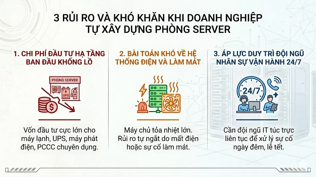 Những rủi ro và khó khăn khi doanh nghiệp tự xây dựng phòng Server